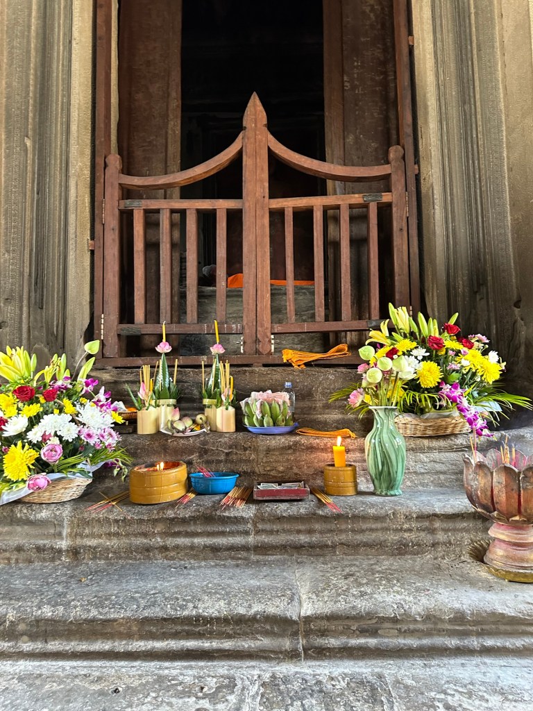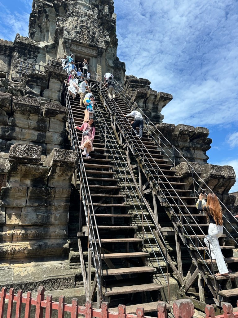 We had booked a cycle tour of Angkor Wat and had in our minds that we were to be escorted to the site and quite literally tour the complex on bikes. We were collected from our hotel and escorted to the in-town office of the tour provider. The guide, who was delightful, great company, and very knowledgeable, introduced us to our cycle helmets and our bikes, and we were off. Yes, we cycled there (8kms), walked around Angkor Wat, cycled to Bayon temple (maybe the same again kms), and then on to the next site (featured in Tomb Raider), and then on to our lunch destination (another 3 or 4kms). We cycled a lot!! Don’t get me wrong, we loved the day, learned a lot, and had one hell of a workout in balmy conditions in the meanwhile. So, be aware of just what you are signing up for. Otherwise known as, pay more attention to the detail!