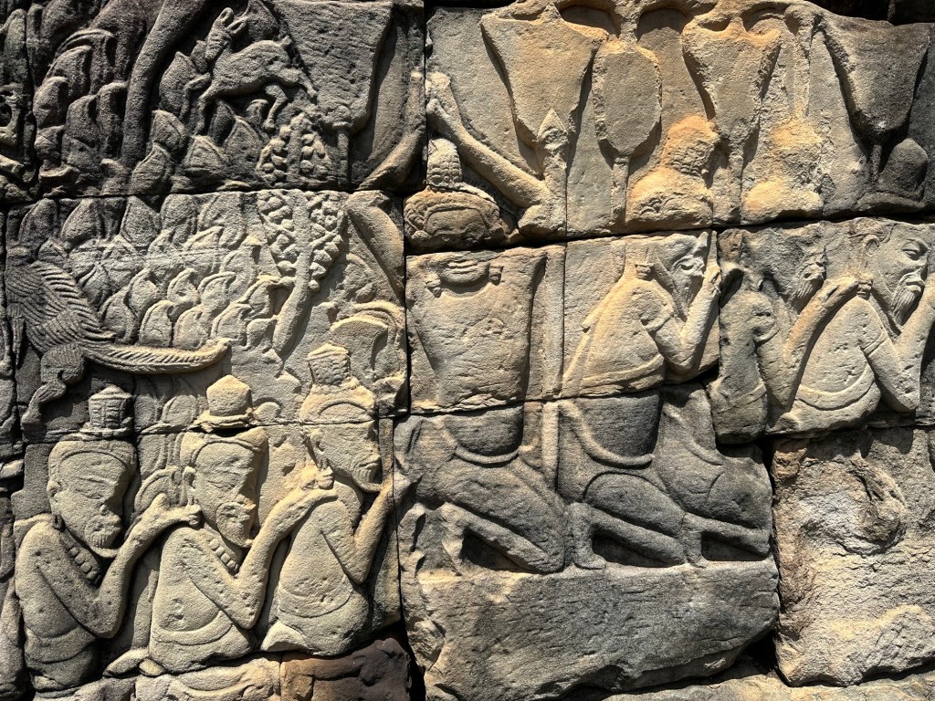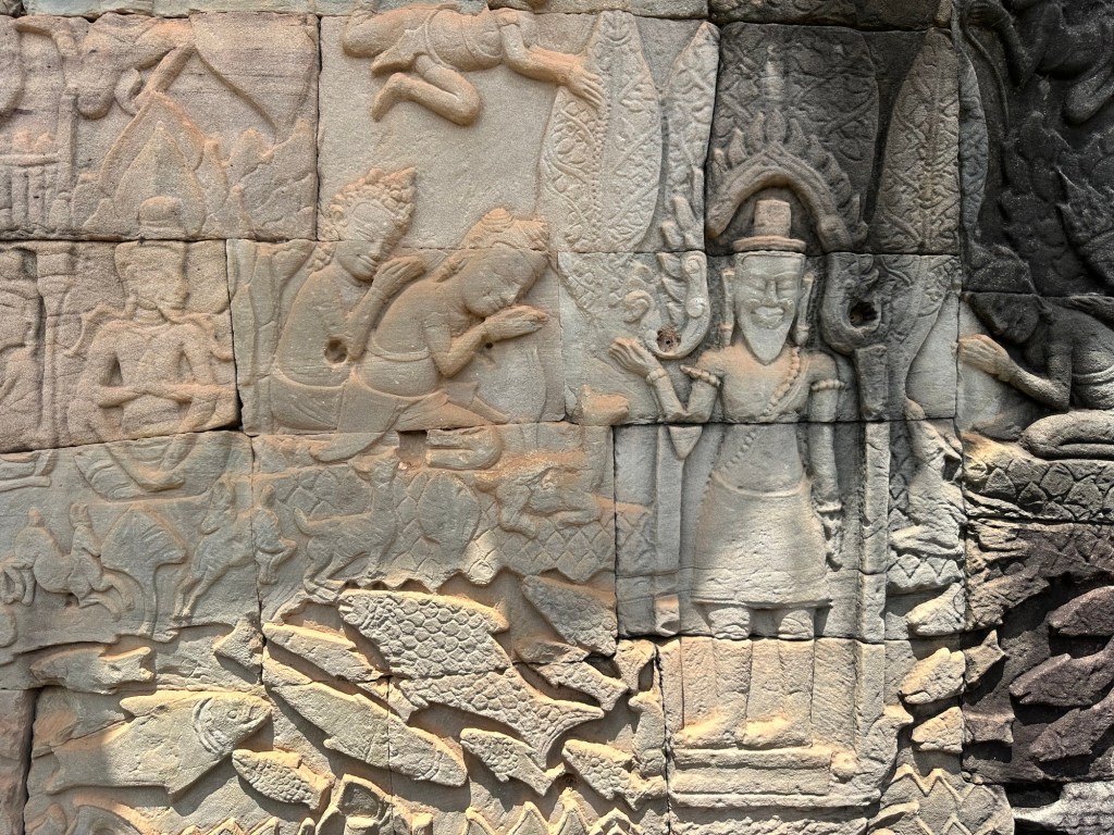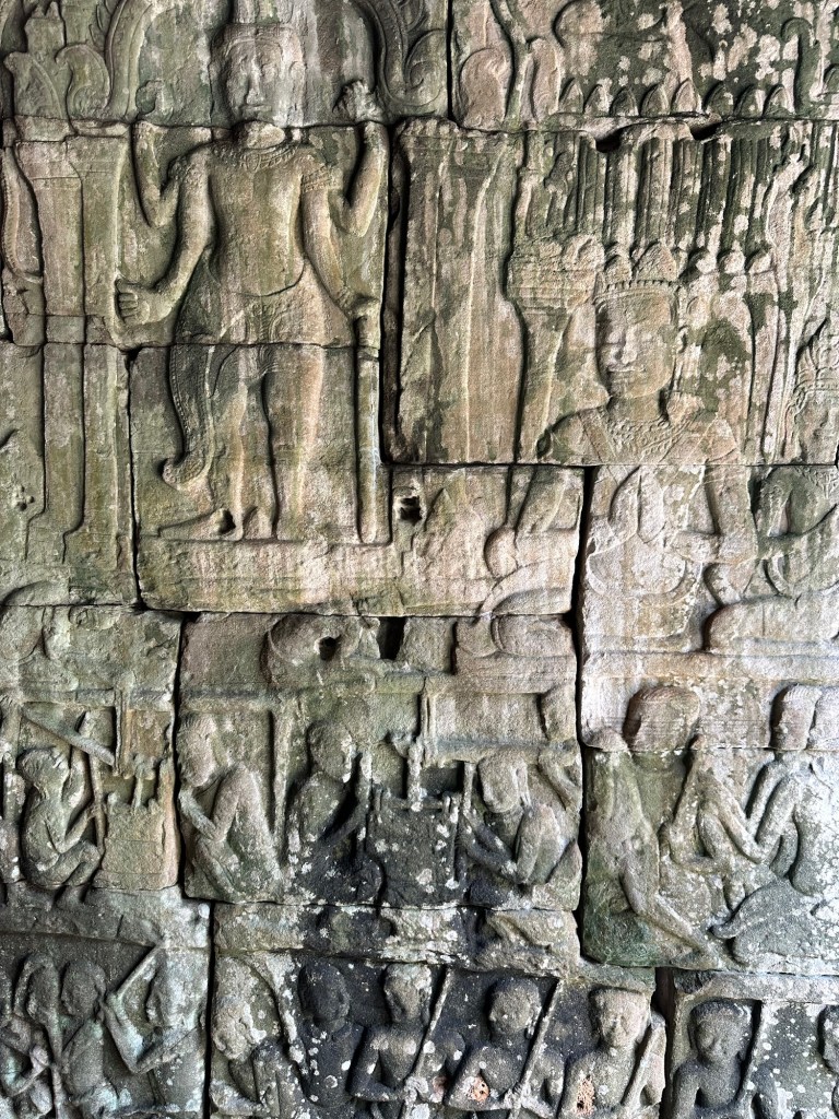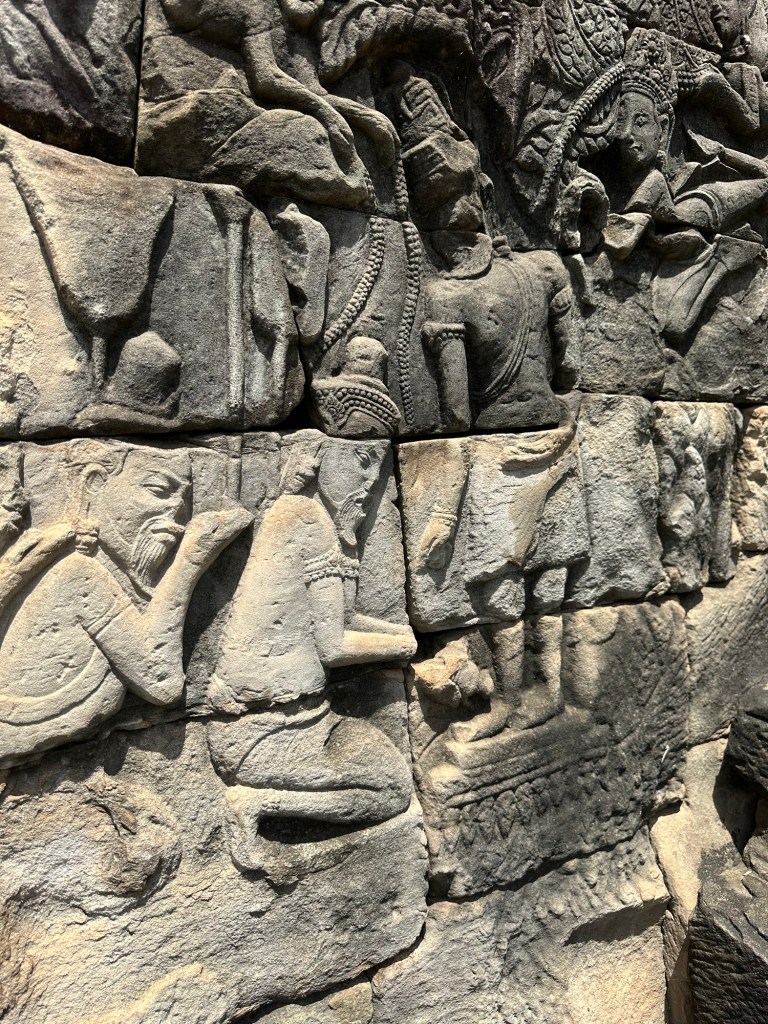 Bayon Temple was remarkable for the carvings on the stone, everywhere, in mind-boggling scale. Our guide, Roem, was able to explain, in very good English, the stories or the meanings behind the intricate stone depictions.