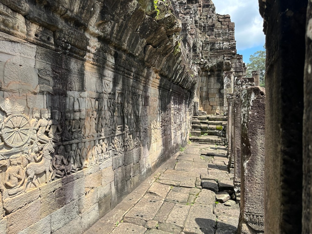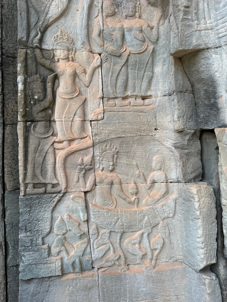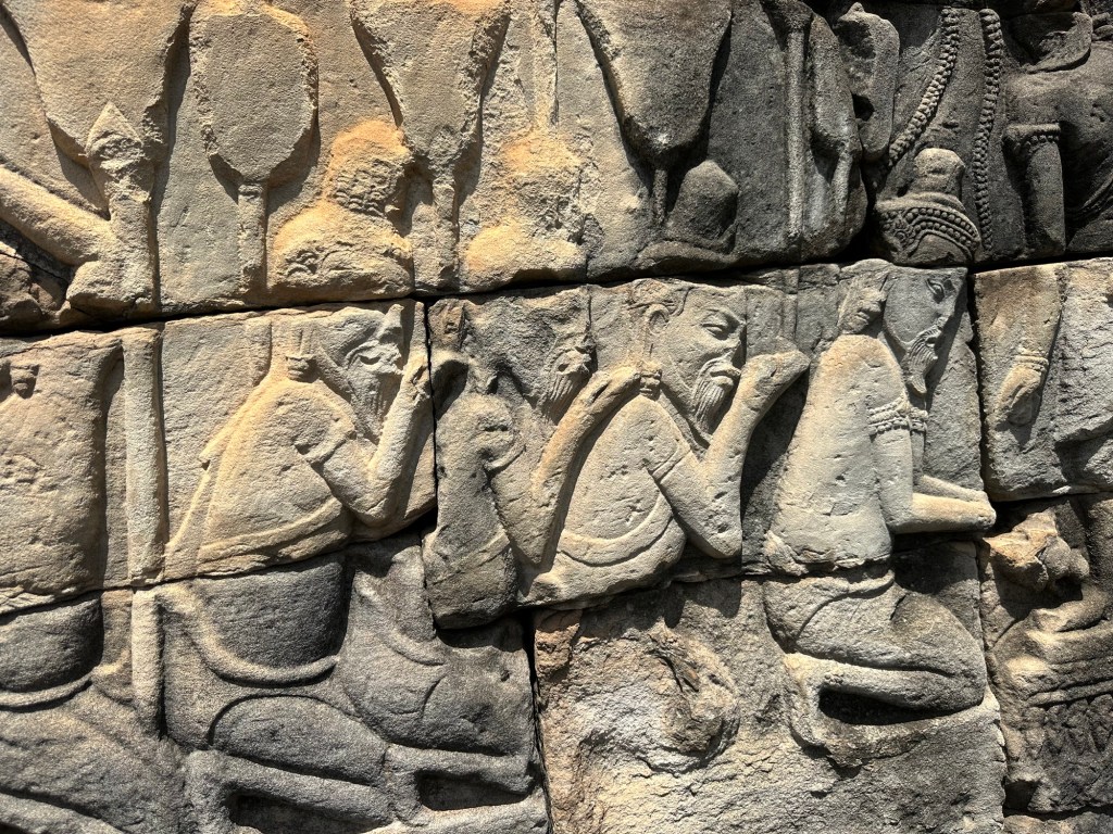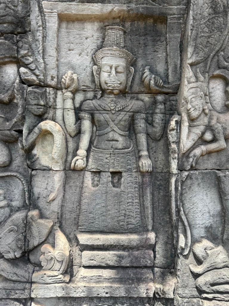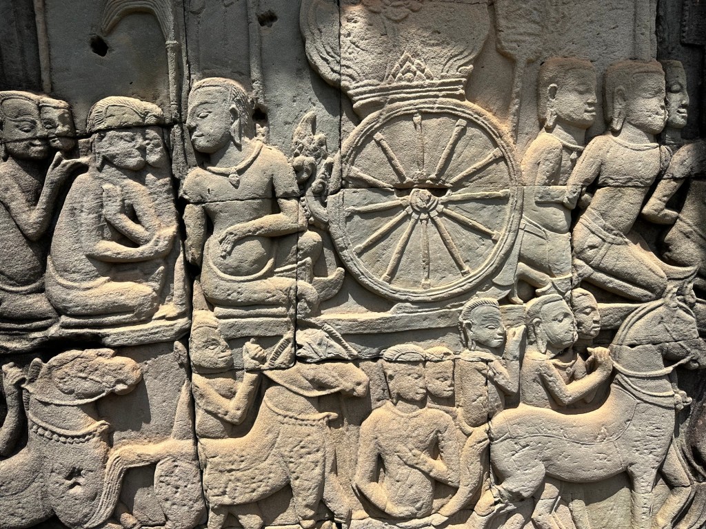 Bayon Temple was remarkable for the carvings on the stone, everywhere, in mind-boggling scale. Our guide, Roem, was able to explain, in very good English, the stories or the meanings behind the intricate stone depictions.