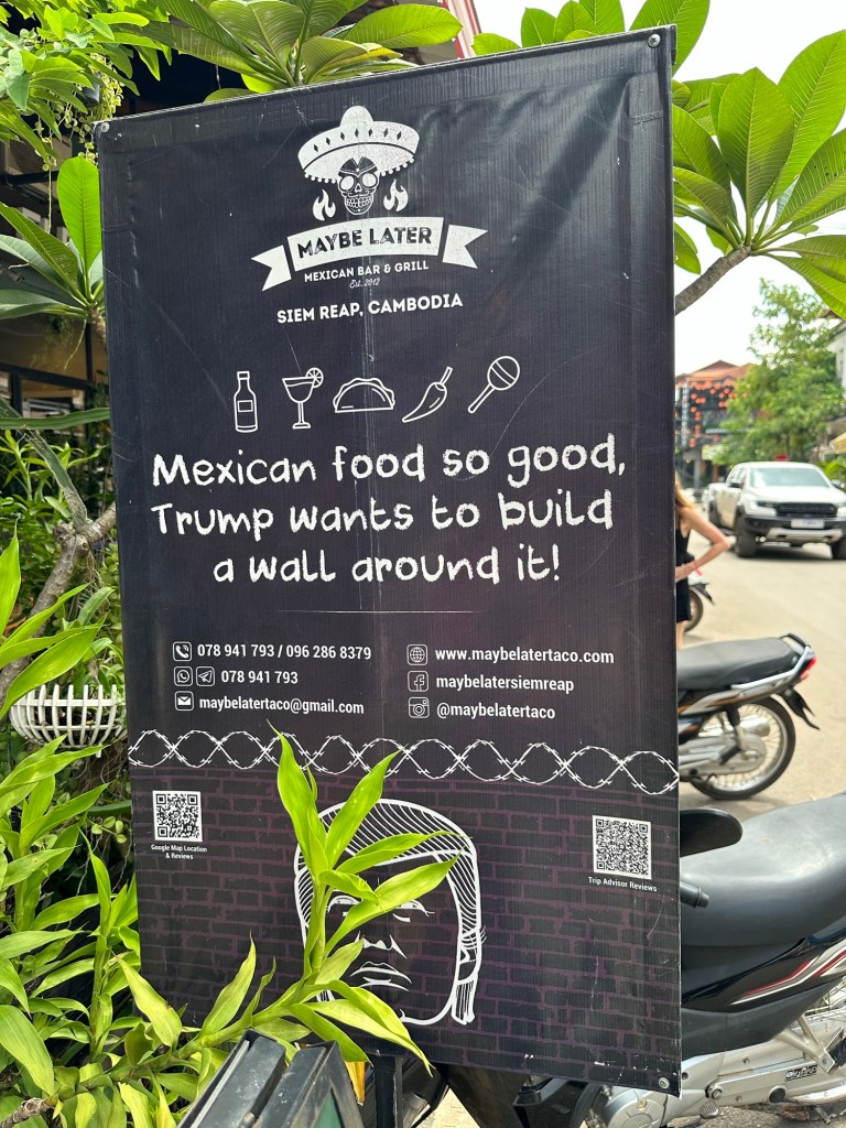Having spotted this sign, this morning, enticed by the good humour and the funky look of the place, we landed there for a meal, this evening. The food was full of flavour but a little cold. Ah well, you cannot win them all. I suppose any reference to the Donald should be enough to send you in the opposition direction!