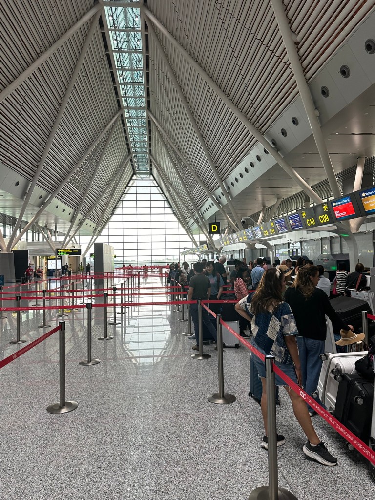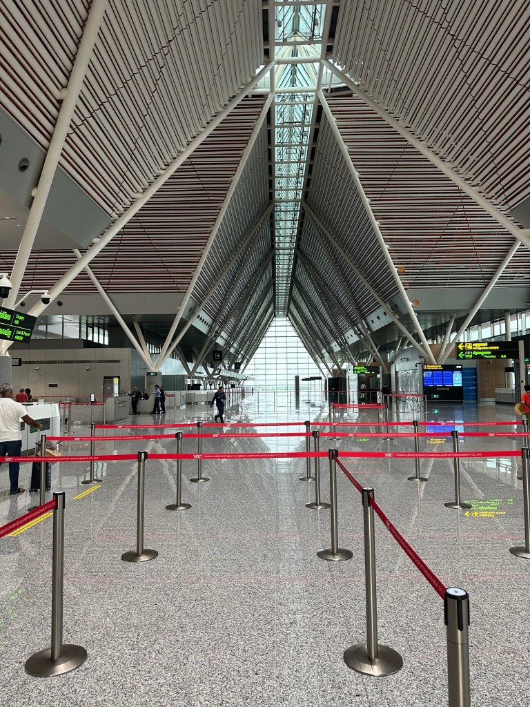 Siem Reap’s new airport is only one year old. It is one hour by taxi from Siem Reap itself, along the ‘Angkor highway’. The old airport was very close to the city and causing problems. It was built to minimise the impact of vibrations and air pollution on the Angkor Archaeological Park and Siem Reap town. It is cavernous, with little traffic, as yet.