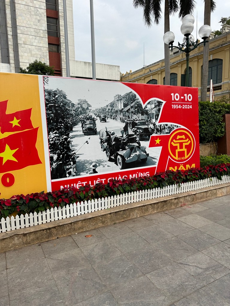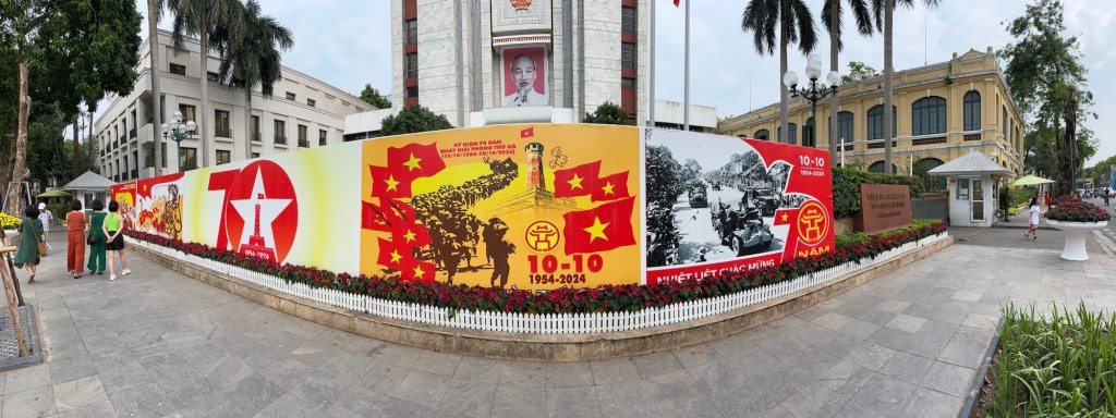 On enquiry, we discovered that we have landed in Hanoi just in time for the 70th anniversary of Liberation of Hanoi Day. That would explain the adornment of most buildings in flags and bunting of various sorts. Also, the amount of placards celebrating key points in Hanoi’s rich – at times, troubled – history.