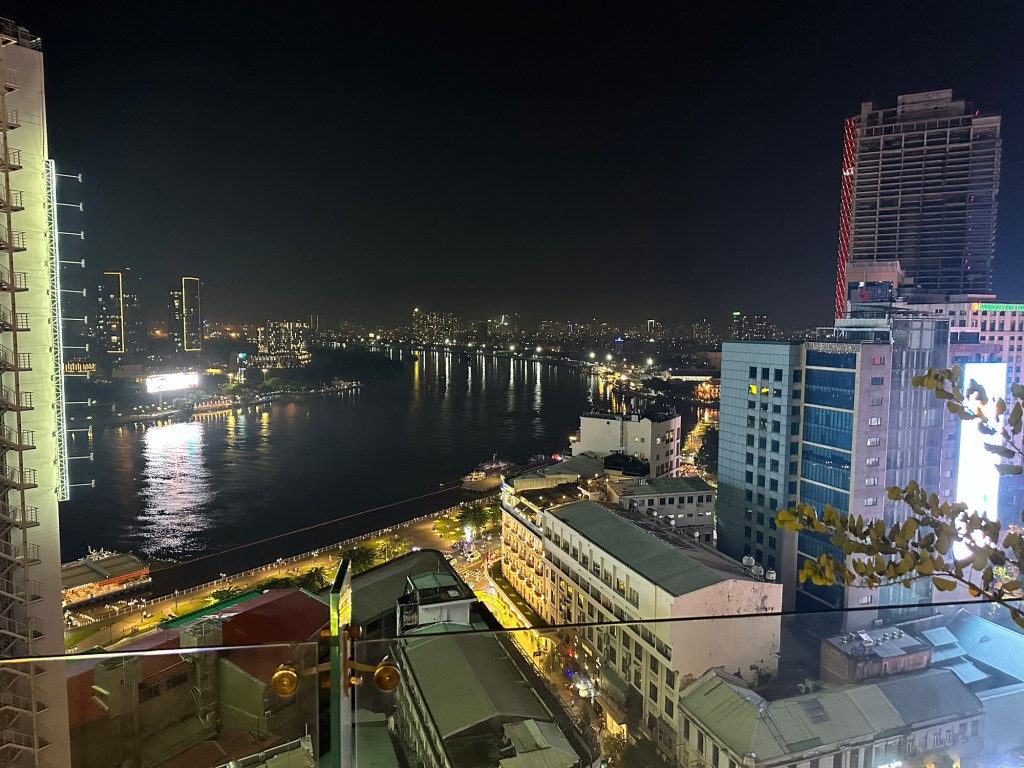 After 3 hiccups on flight time: 14:35 became 15:30, became 17:10, we finally lifted off and the pilot found Ho Chi Minh City (I prefer Saigon, don’t you?) at precisely 19:20, as the main man predicted.