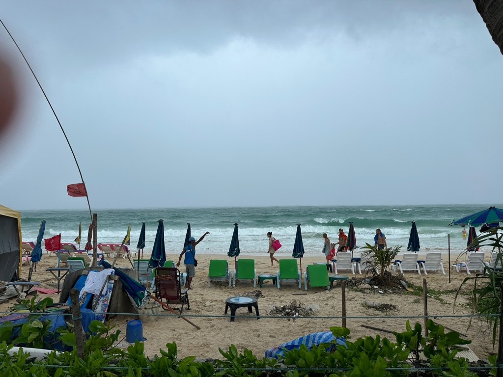 When it rains here, it rains. This morning, we were sat out, basking in the soothing, warm breeze, reading. The sky in the distance, looking out across the sea, began to darken. Just minutes later, it swept in…